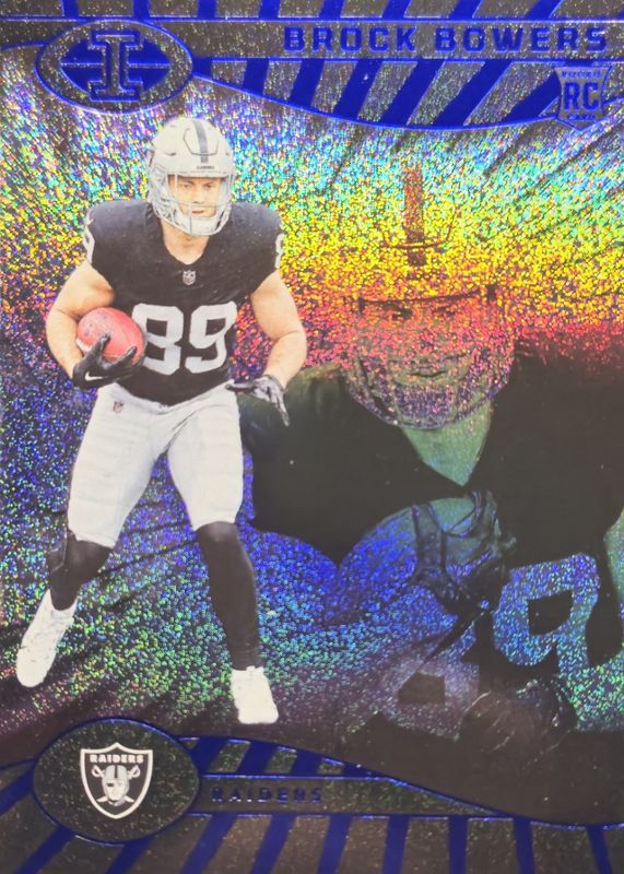 This card is 1 of 25 Brock Bowers' card variations in the 2024 Illusions set being tracked by Sports Card Investor, including Base, Retail, Trophy Collection Emerald, Trophy Collection Galactic, and Trophy Collection Orange.