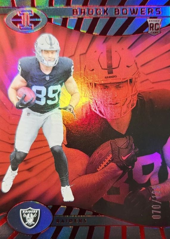 This card is 1 of 25 Brock Bowers' card variations in the 2024 Illusions set being tracked by Sports Card Investor, including Base, Retail, Trophy Collection Dots, Trophy Collection Emerald, and Trophy Collection Galactic.