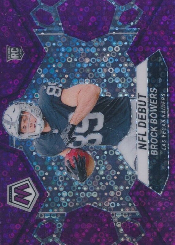 2024 PANINI MOSAIC BROCK BOWERS RC PURPLE NO HUDDLE #’D /50 #286 RAIDERS ROOKIE
