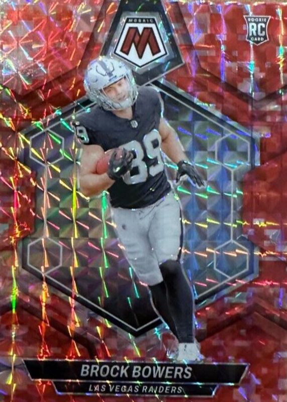 The Brock Bowers 2024 Mosaic #313 Red Camo Rookie card in Raw condition has not changed in price in the last 30 days and was last sold for $6.50 .