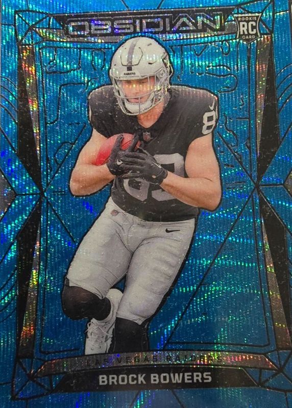The Brock Bowers 2024 Obsidian #101 International Blue Wave Rookie card in Raw condition has not changed in price in the last 30 days and was last sold for $51.00 .