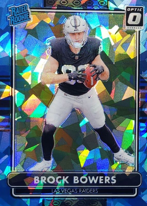 The Brock Bowers 2024 Optic #7 2014 Retro Series - Ice /15 Rookie card in Raw condition has not changed in price in the last 30 days and was last sold for $118.88 .