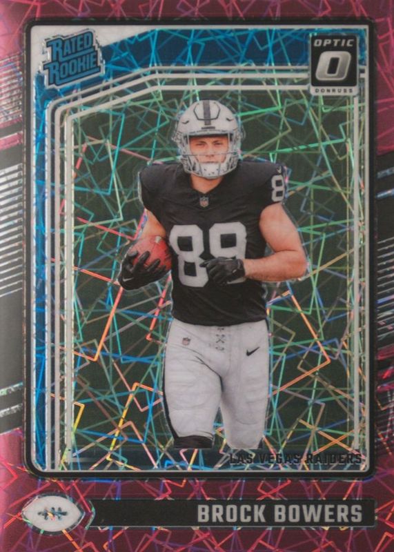 2024 Donruss Optic #215 Brock Bowers Rated Rookie Pink Velocity Prizm /80 SSP RC