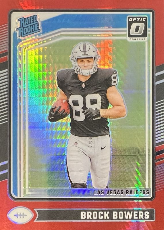 BROCK BOWERS 2024 Optic #215 RED HYPER PRIZM Rookie RC Las Vegas Raiders