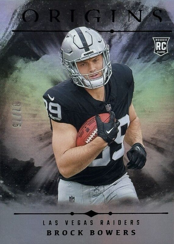 This card is 1 of 25 Brock Bowers' card variations in the 2024 Origins set being tracked by Sports Card Investor, including Base, Holo Red /299, Holo Orange /149, Red /149, and Orange /125.