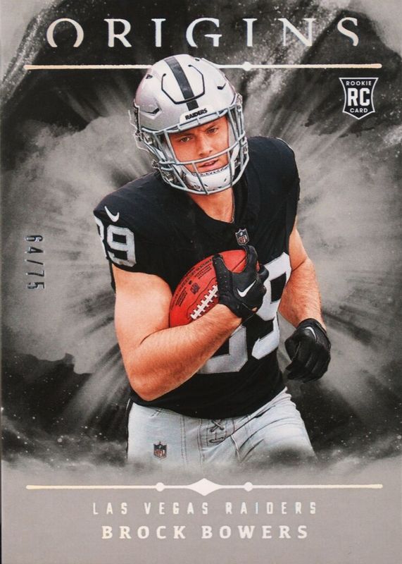 This card is 1 of 25 Brock Bowers' card variations in the 2024 Origins set being tracked by Sports Card Investor, including Base, Holo Red /299, Holo Orange /149, Red /149, and Orange /125.