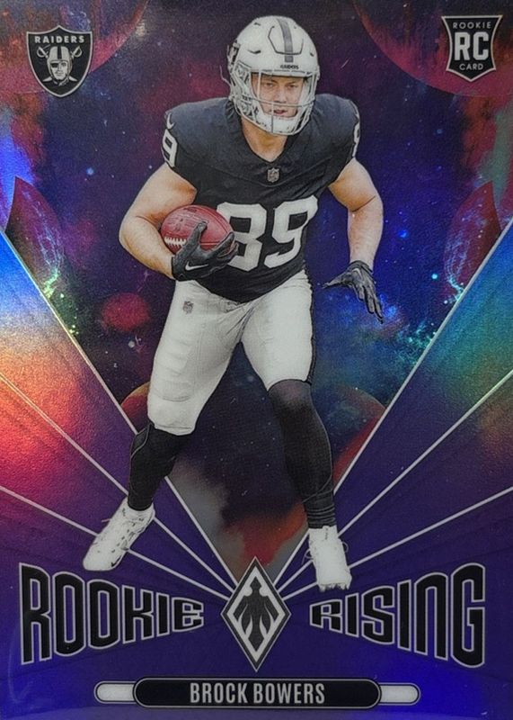 The Brock Bowers 2024 Phoenix #RR-BBS Rookie Rising - Purple card in Raw condition has moved up $1.01 (+102%) in the last 30 days and was last sold for $2.00 .