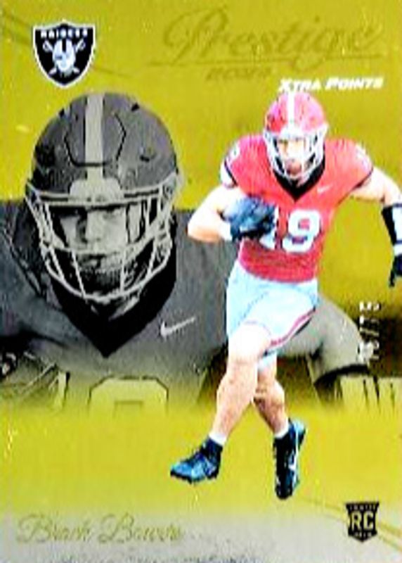 The Brock Bowers 2024 Prestige #305 Gold Xtra Points /75 Rookie card in Raw condition has not changed in price in the last 30 days and was last sold for $30.00 .