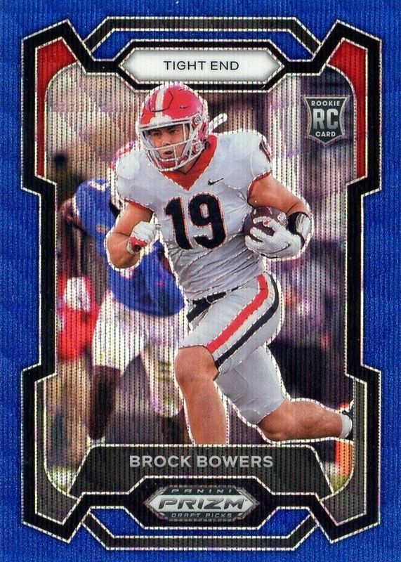 The Brock Bowers 2024 Prizm Draft Picks #107 Blue Wave /249 Rookie card in Raw condition has not changed in price in the last 30 days and was last sold for $5.11 .