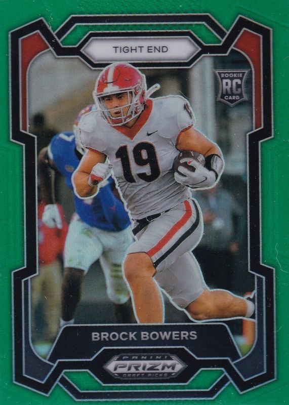 The Brock Bowers 2024 Prizm Draft Picks #107 Green Rookie card in Raw condition has not changed in price in the last 30 days and was last sold for $2.00 .