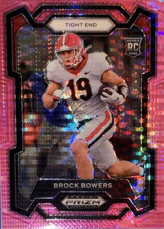 The Brock Bowers 2024 Prizm Draft Picks #107 Neon Pink Pulsar /15 Rookie card in Raw condition has not changed in price in the last 30 days and was last sold for $36.00 .