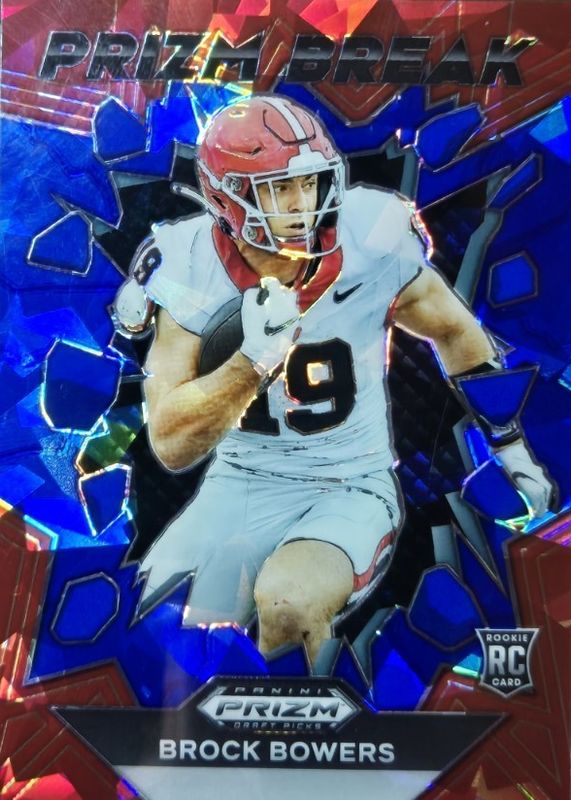 The Brock Bowers 2024 Prizm Draft Picks #PB-BBS Prizm Break - Blue Ice /99 Rookie card in Raw condition has not changed in price in the last 30 days and was last sold for $6.50 .