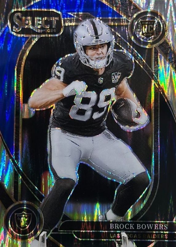 2024 Panini Select Club Brock Bowers Black & Blue Shock Prizm Rookie Raiders