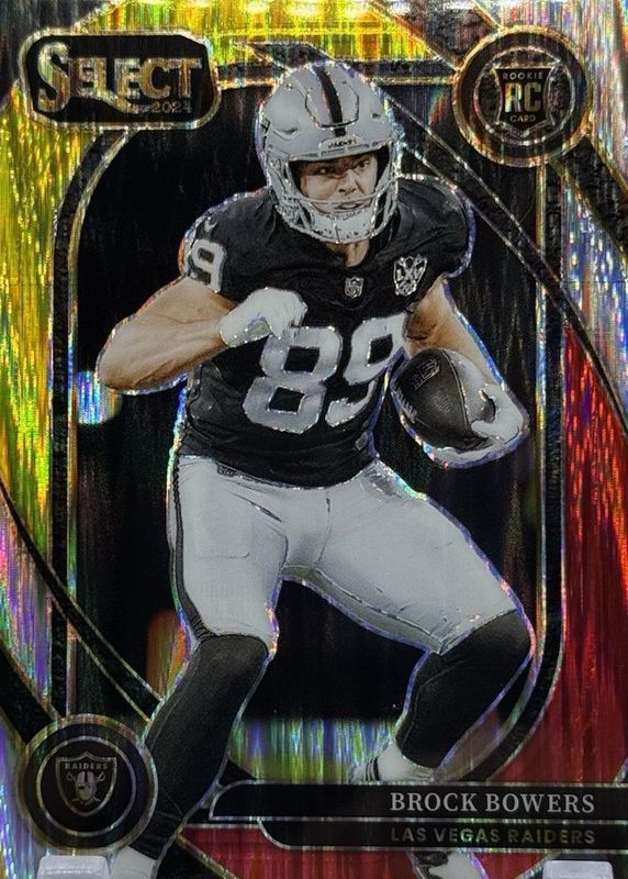 The Brock Bowers 2024 Select #222 Club Level Red & Yellow Shock Rookie card in Raw condition has moved up $1.95 (+188%) in the last 30 days and was last sold for $2.99 .
