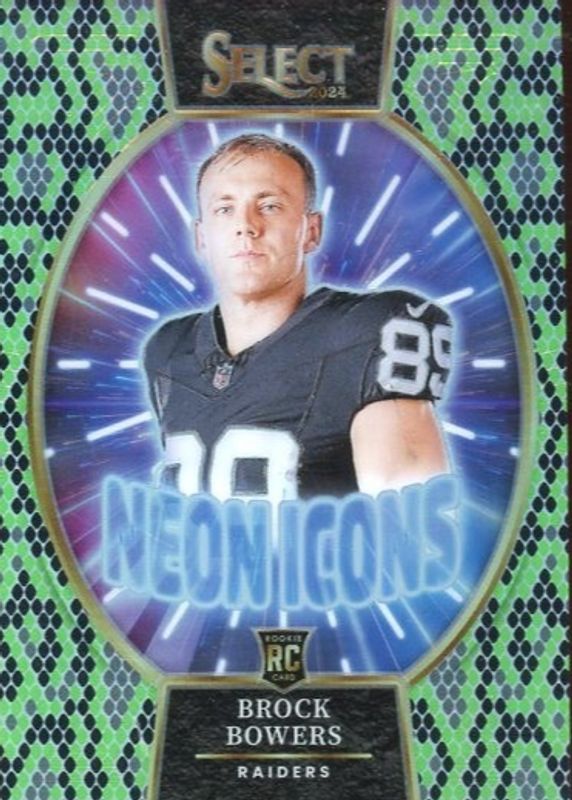 Brock Bowers 2024 Select #16 Neon Icons - Green & Black Snakeskin /2 Rookie RAW Price Guide