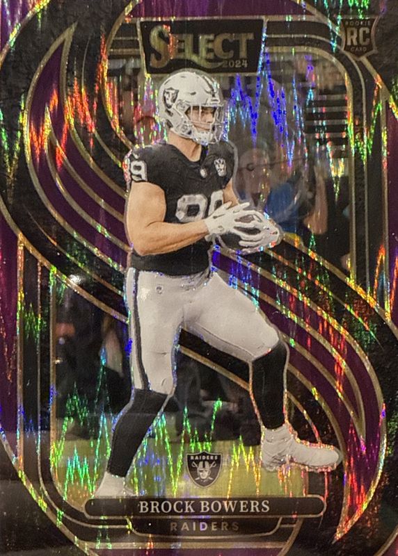 BROCK BOWERS #/360 RC 2024 Panini Select Purple Shock Prizm Premier #118 Raiders