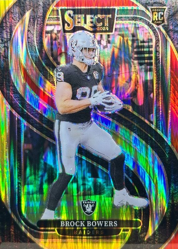 Brock Bowers 2024 Select Premier Level #118 Red & Yellow Shock Prizm RC-Raiders