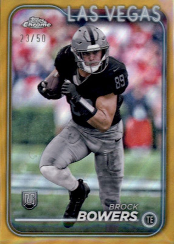Brock Bowers 2024 Topps Chrome Football #207 GOLD REFRACTOR Rookie Card #40/50!