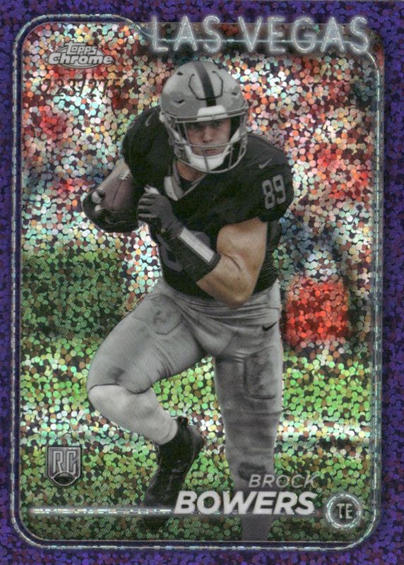 🔥Brock Bowers 2024 Topps Chrome #/275 PURPLE SPECKLE REFRACTOR RC #207🔥