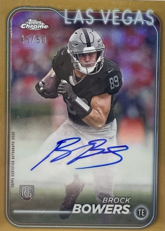 2024 Topps Chrome BROCK BOWERS TRUE GOLD REFRACTOR Auto #/50 RC Raiders🔥