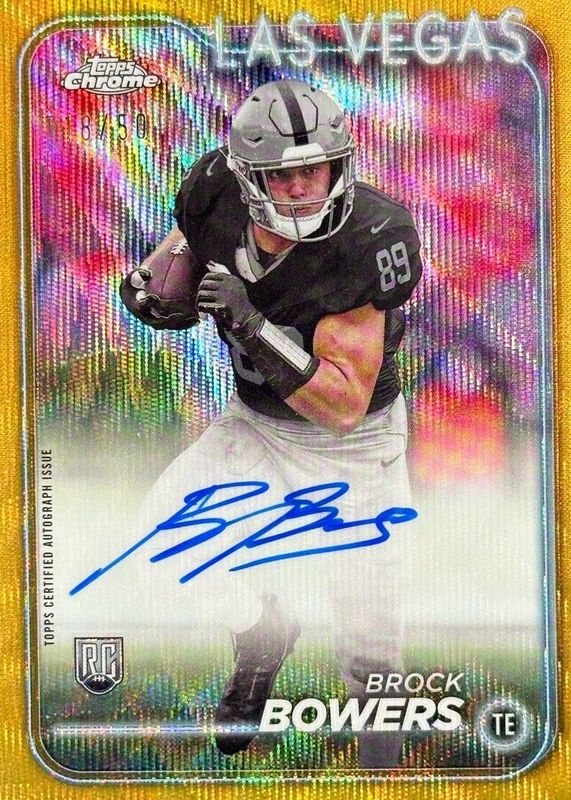 2024 TOPPS CHROME BROCK BOWERS RC ROOKIE ON CARD AUTO GOLD WAVE SP/50 RAIDERS 🔥