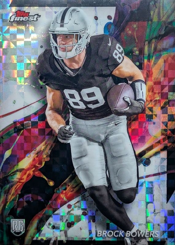 2024 FINEST BROCK BOWERS CHECKERBOARD REFRACTOR ROOKIE CARD RAIDERS NFL 82 topps