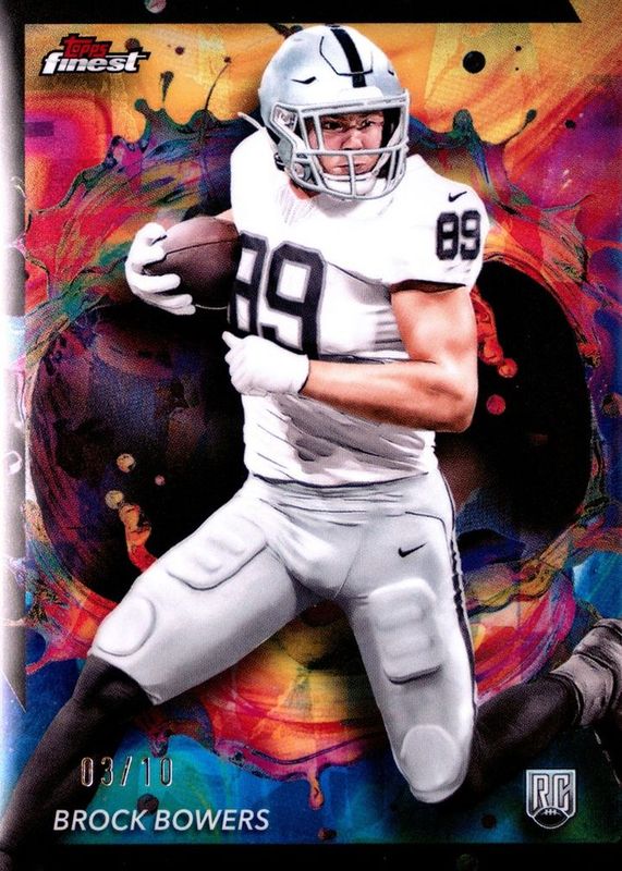 The Brock Bowers 2024 Topps Finest #282 Rare - Oil Spill Refractor /10 Rookie card in Raw condition has not changed in price in the last 30 days and was last sold for $75.00 .