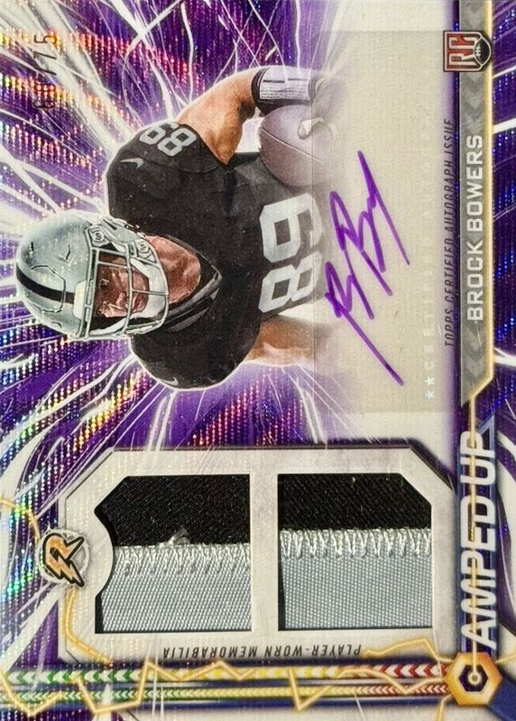 Auctions Ending Soon for Brock Bowers 2024 Topps Resurgence #AU-BB Amped Up Rookie Patch Autographs - Purple Surge Refractor /75 RAW