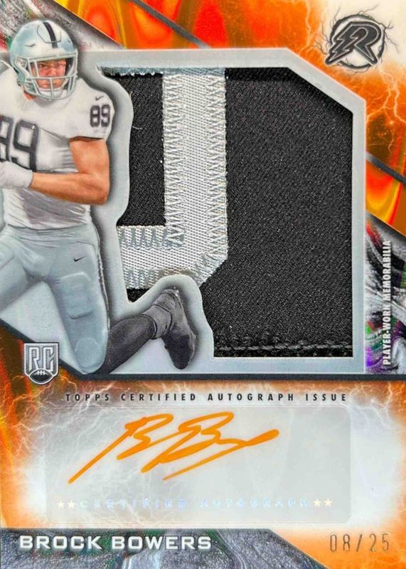 Auctions Ending Soon for Brock Bowers 2024 Topps Resurgence #RPA-BB Resurgence Rookie Patch Autographs - Orange Power Surge Refractor /25 RAW