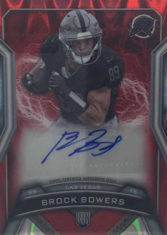 Auctions Ending Soon for Brock Bowers 2024 Topps Resurgence #RRS-BB Resurgence Rookie Signatures - Red Power Surge Refractor /5 RAW