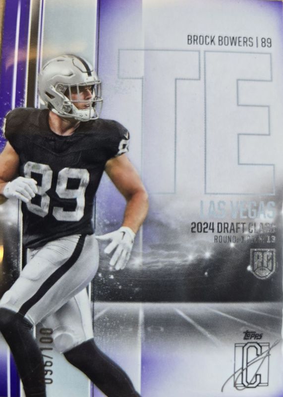 Brock Bowers 2024 Topps Signature Class #129 Purple /100 Rookie RAW Price Guide