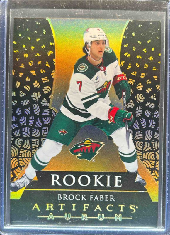 The Brock Faber 2023 Upper Deck Artifacts #A-31 Aurum Rookie card is 1 of 40 Brock Faber's card variations in the 2023 Upper Deck Artifacts set being tracked by Sports Card Investor, including Base /999, Leather, Plexi, Turquoise, and Wood.