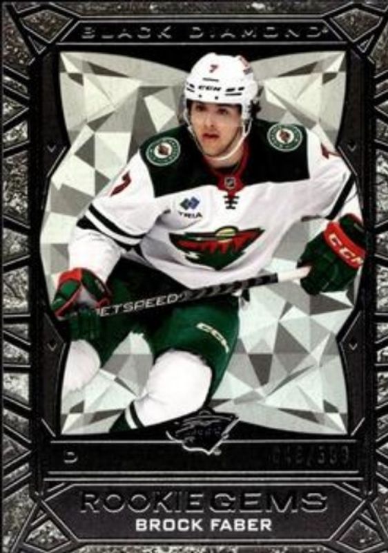 The Brock Faber 2023 Upper Deck Black Diamond #RG-BF Rookie Gems /399 card is 1 of 38 Brock Faber's card variations in the 2023 Upper Deck Black Diamond set being tracked by Sports Card Investor, including Base /349, Red /75, Blue /25, Pure Black Auto /25, and Green /10.