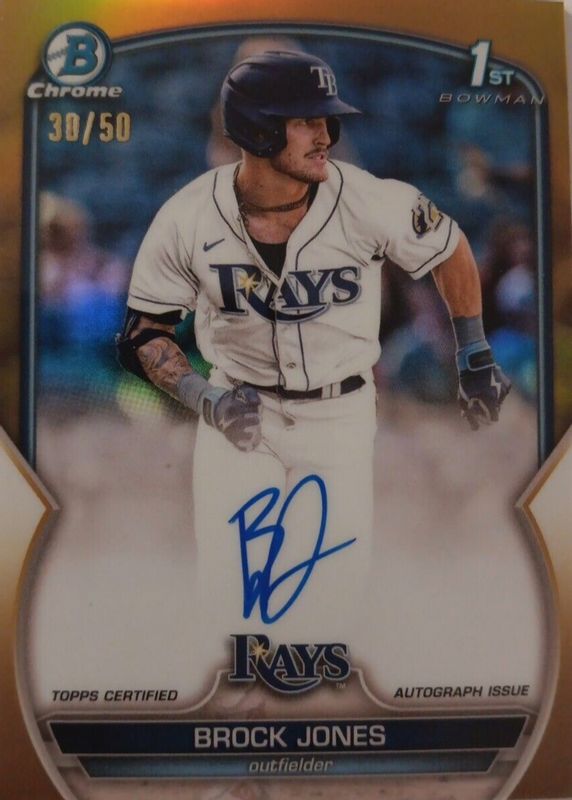 2023 Bowman Chrome Brock Jones 1st Prospect Gold Refractor Auto #07/50 Rays