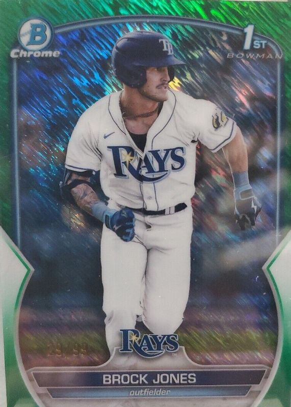 Auctions Ending Soon for Brock Jones 2023 Bowman #BCP-115 Chrome Prospects - Green Shimmer Refractor /99 (1st) RAW