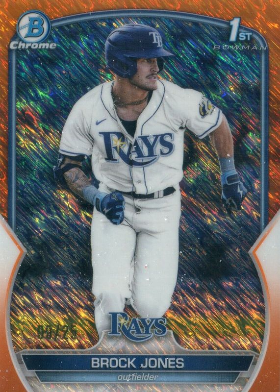 Auctions Ending Soon for Brock Jones 2023 Bowman #BCP-115 Chrome Prospects - Orange Shimmer Refractor /25 (1st) RAW