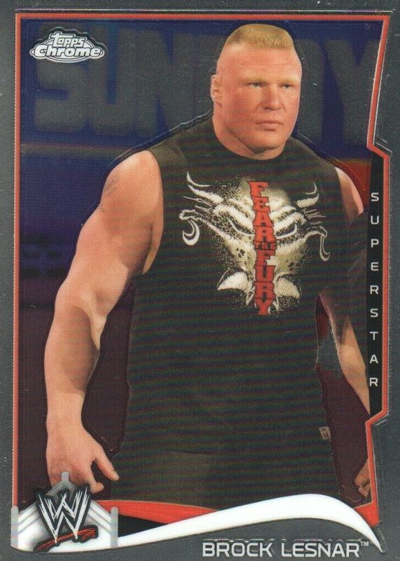 This card is 1 of 6 Brock Lesnar's card variations in the 2014 Topps Chrome WWE set being tracked by Sports Card Investor, including Atomic Refractor, Refractor, X-Fractor, Red Refractor /199, and Gold Refractor /50.