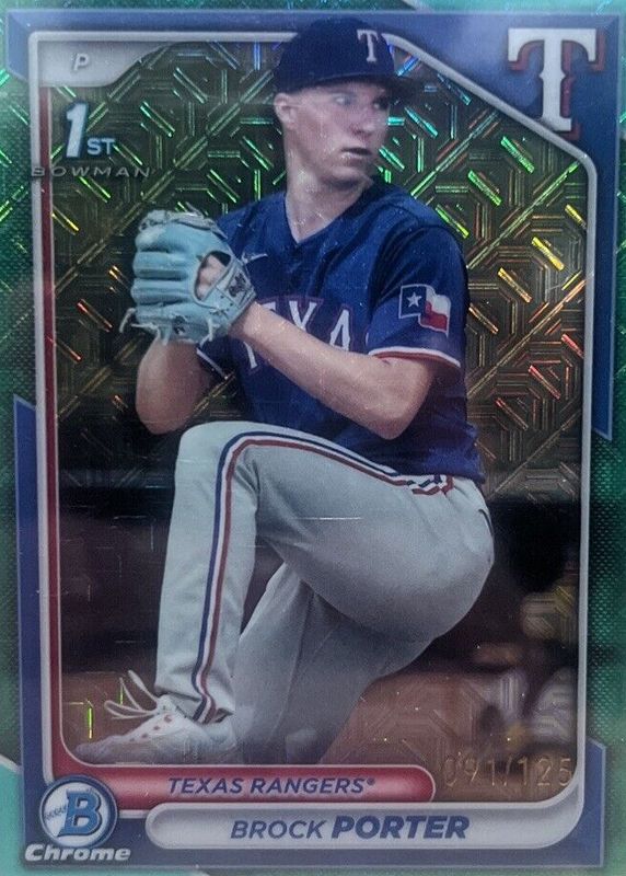 This card is 1 of 13 Brock Porter's card variations in the 2024 Bowman Mega Box set being tracked by Sports Card Investor, including Chrome Prospects (1st), Chrome Prospects - Fuchsia Refractor /299 (1st), Chrome Prospects - Purple Refractor /250 (1st), Chrome Prospects - Pink Refractor /199 (1st), and Chrome Prospects - Navy Refractor /175 (1st).