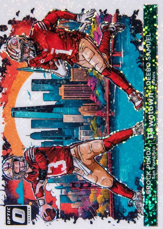 This card is 1 of 5 Brock Purdy / Deebo Samuel's card variations in the 2024 Optic set being tracked by Sports Card Investor, including Downtown Duos /(SSP), Downtown Duos - Black Pandora /25, Downtown Duos - Gold /10, and Downtown Duos - Gold Vinyl /1.