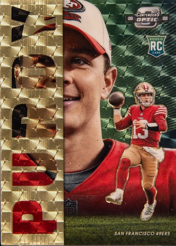 This card is 1 of 55 Brock Purdy's card variations in the 2022 Contenders Optic set being tracked by Sports Card Investor, including Base, Silver, Red /175, Blue /99, and Orange /50.