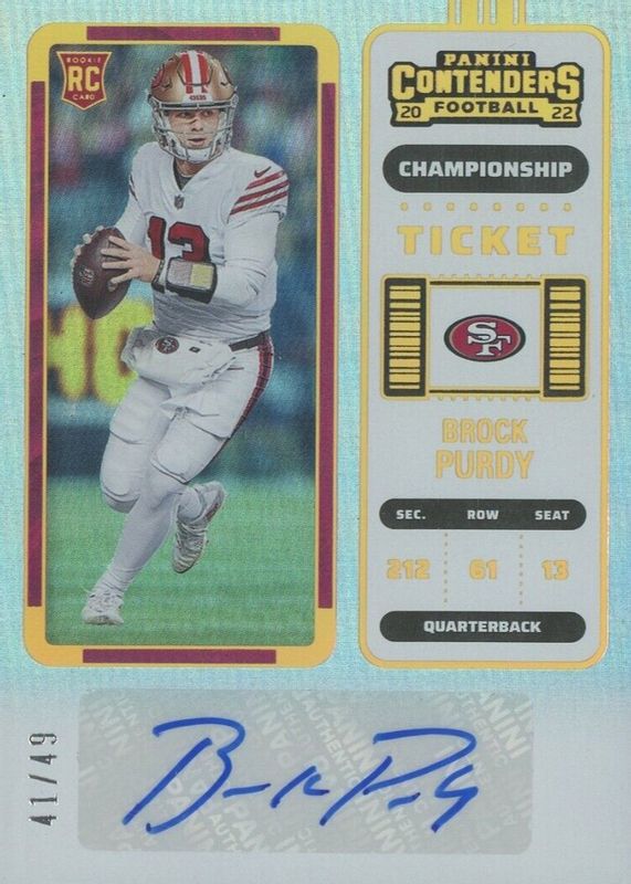 Best Prices Available For Sale of Brock Purdy 2022 Contenders #263 Rookie Ticket Auto - Championship Ticket /49