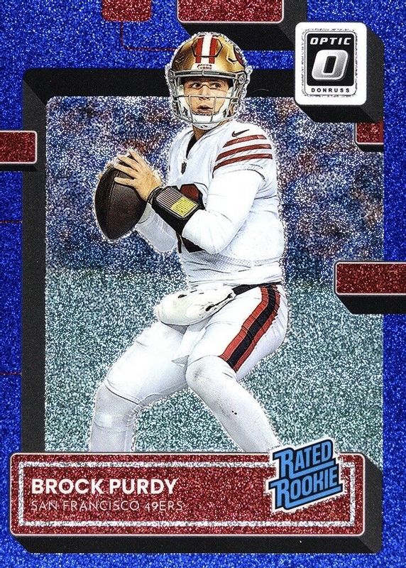 2022 Donruss Optic Brock Purdy Blue Glitter Rated Rookie RC Prizm SSP 49ers #277
