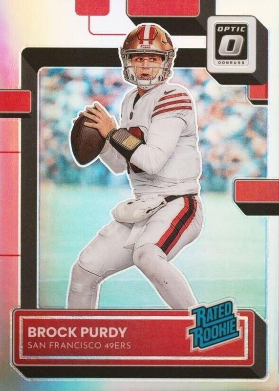 The Brock Purdy 2022 Optic #277 Holo Rookie card in Raw condition has moved up $29.99 (+132%) in the last 30 days and was last sold for $52.71 .