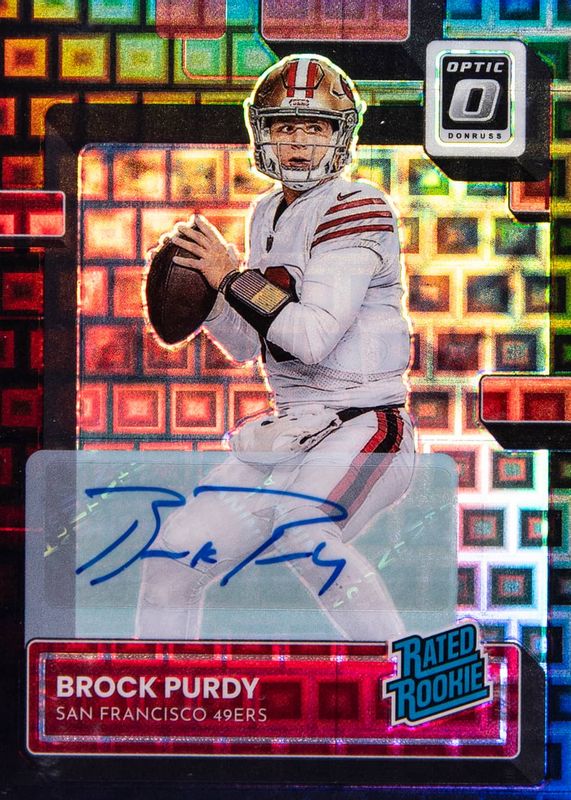 Auctions Ending Soon for Brock Purdy 2022 Optic #277 Rated Rookie Autographs - Black Pandora /25 RAW