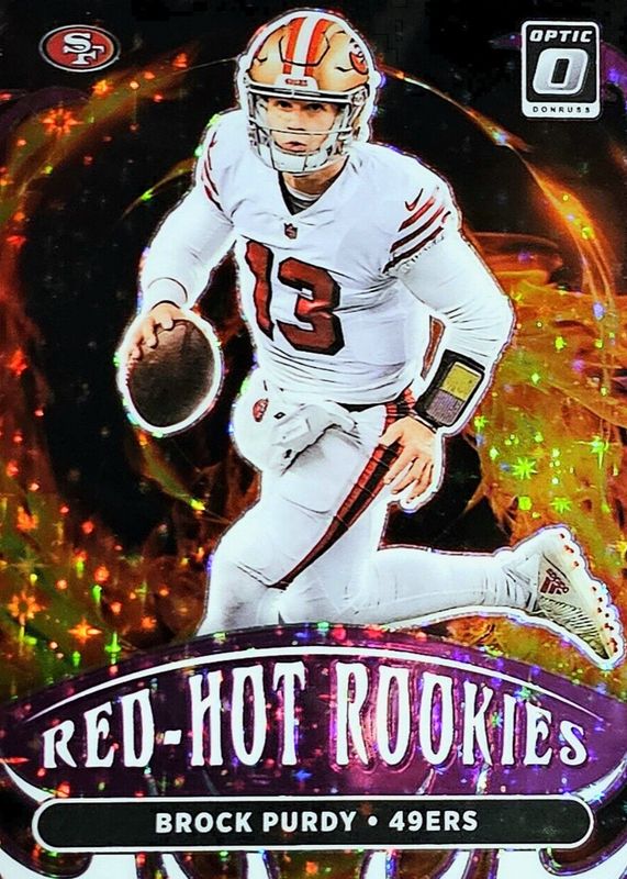 2022 Donruss Optic Brock Purdy #d/25 FOTL Red Hot Rookies Purple Stars *CLEAN*
