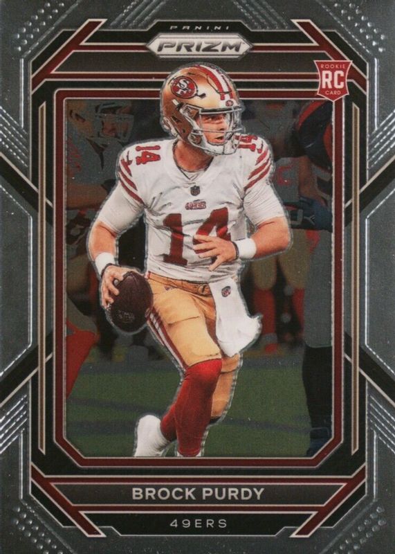The Brock Purdy 2022 Prizm #353 Base Rookie card in Raw condition has moved down -$4.50 (-37.5%) in the last 30 days and was last sold for $7.50 .