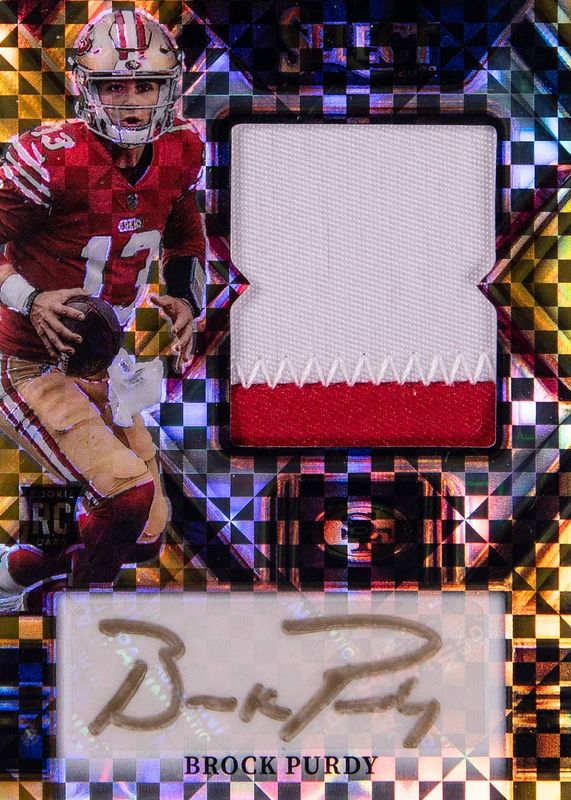 Auctions Ending Soon for Brock Purdy 2022 Select #JRS-BP Jumbo Rookie Signature Swatches - Gold /10 RAW