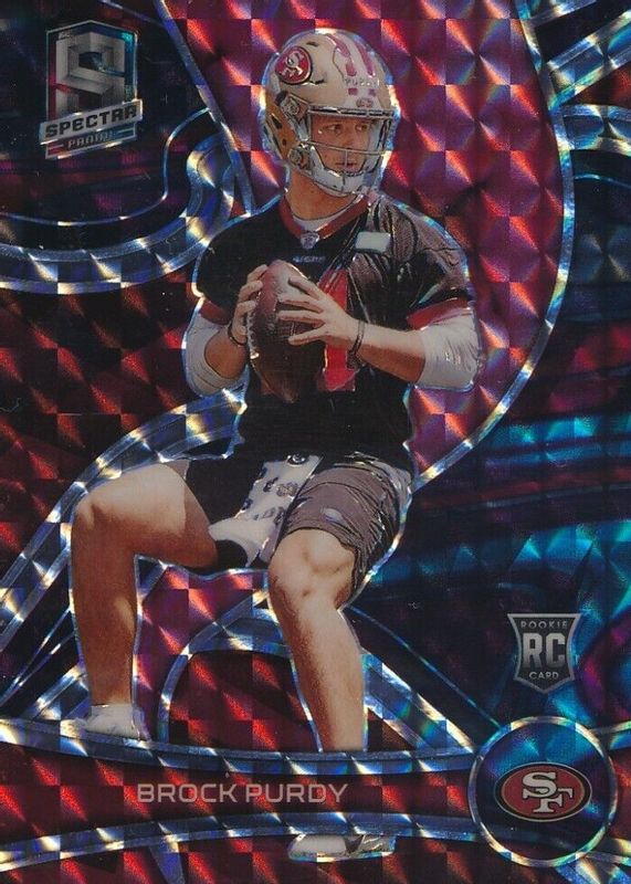 The Brock Purdy 2022 Spectra #198 Interstellar /60 Rookie card in Raw condition has moved down -$0.01 (-0.0%) in the last 30 days and was last sold for $134.99 .