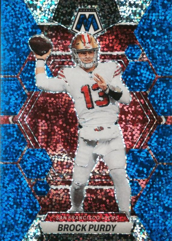 Auctions Ending Soon for Brock Purdy 2023 Mosaic #211 Blue Sparkle /96 RAW