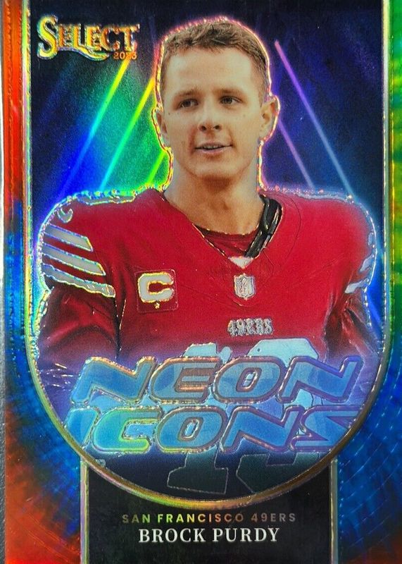 The Brock Purdy 2023 Select #NI-BPU Neon Icons - Tie-Dye /25 card in Raw condition has not changed in price in the last 30 days and was last sold for $75.00 .